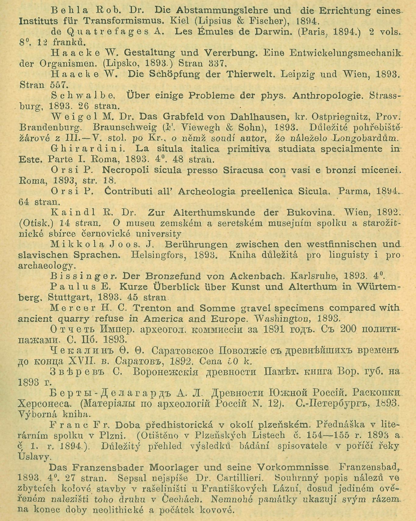 bronzové u Mosony-Szolnoku a Mosony-Jessehofu (str. 207). M. Wosinszky_ Nálezy v Gerjenu (Tolna, str. 212). AI. Könyöki. Nálezy v Selypu (Novo-hrad). Vlnice (str. 227). Gabriel Ttíglás. Předhistorická Dacie (.str. 403). M. Wosinszky. Jeskyně u Abaligetu a nedaleká mohyla z doby římské (str. 403). A. Farkas. Pohřebiště z doby stěhování uárodů u Martély (str. 413).
