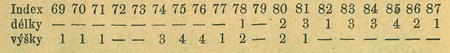 Uherských i moravských slovenských lebek (provenience^ neodlišena) měřil kdysi 20 Dr. A. Weissbach*) a našel střední index délkový 83'5, bod oscillační byl na číslech 83—85. Indexy délky a výšky byly rozloženy takto :