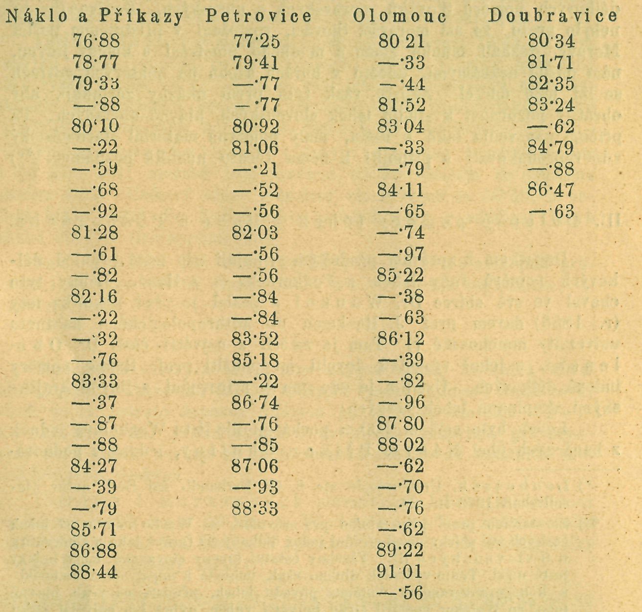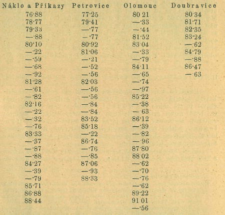 V řadách těchto zajímá nejvíce zjev dosti podivný: že totiž obě řady lebek hanáckých, kraje a lidu jednoho, pouze místně oddělené, objevují rozdíl v tom, že „Náklo a Příkazy" ukazují několik mesocefalů a méně vyšších indexů, „Olomouc" proti tomu žádné meso-cefaly a poměrně větší zastoupení ve vysokých číslech indexu.
