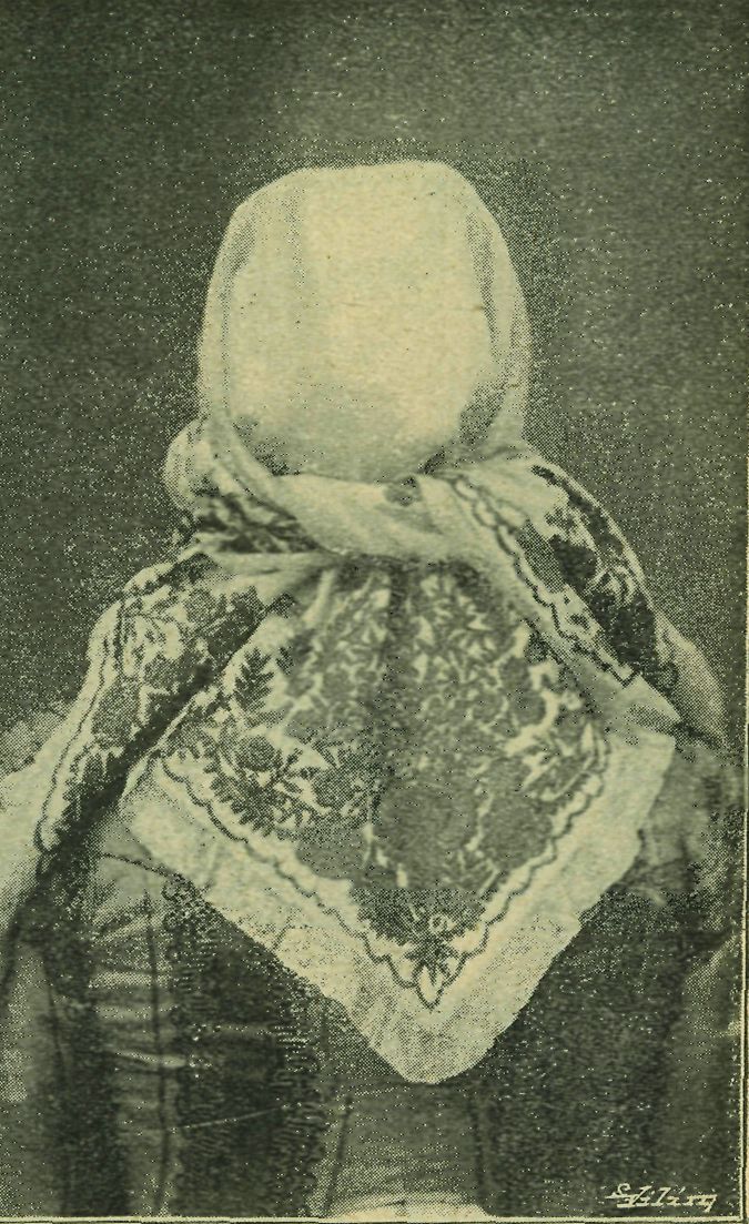 „věnec", jež filologovi jsou téhož významu, také jinde oba názvy slýcháme a čítáme pomíchány. Naše matičky rozeznávají je velmi přesné, každé slovo znamená jim něco jiného. Zkoušela jsem v té příčině stavěcku čepců, loni zemřelou Hendryšku. Když mi ukazovala svůj vysoký svatební věnec, tázala jsem se jí, měla-li o svatbě „tento vínek", ona však poněkud rozhorleně mne opravila: „K svatbě jsem měla tenhle věnec, však vidíte, že je uvítej, a vínek, ten je šitej, touownemám, ani jsem neměla. Za mlada jsem viděla, jak je nosily." Podobně odpověděly také jiné, kterých jsem se ptala.)