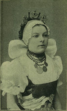 Hlavním kusem úpravy žen vdaných byl čepec, za svobodna čepců zpravidla nenosívaly. (Viz obr. 5.) Naskytla se sice tu a tam v obcích blíže města ležících žena, která tvrdila, že již svobodna mívala čepec zlatý; když jsem však pátrala po zprávě té dále, vyšlo na jevo, že v celém kraji bylo jen několik dívek, které o poutích a svátcích v čepec se oblékaly, ale že si na znamení panenství na levou stranu čepce připjaly zelený věneček. „Staroušek" v Éepově tvrdil mi, že v nedalekých Kolomutech parádnice čepce měly a. nosily, ale „stařenka" kývala na mne, a aby pravdy nezamlčela a přece manželovi veřejně neodporovala, po straně mi pošeptala, že „dědek houby ví; to prý jen některá ta furijantka si čepec nastrčila, aby ukázala, jaká z ní bude hezká žena." Také prý starší lidé . v Řepově i v jiných obcích na takové všetečnice s úštěpkem pokřikovali: