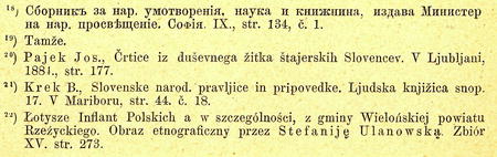 Také Slovincům je legenda tato známa. V Štyrsku zachovalo se podání, že svého času obilí bylo mnohem úrodnější než nyní; klas sahal od kořene až k vrchu. Lidé stali se však tak opovážliví, že matky děti své pšenicí otíraly. Boha to rozhněvalo. Byla právě doba, když obilí začalo dostávati klasy. Bůh vzal za klas, chtě jej sesmyknouti, potom ještě málo posečkal a ohlížel se, zdali lidé budou za chléb prositi. Nikdo neprosil. Tehdy Bůh poněkud popotáhl a opět čekal, a tak pětkráte. Když konečně klas byl už jen jako prst dlouhý, psík usedl před Boha a předníma nohama za chléb prosil. Proto Bůh klasu úplně neodrhnul. Kolikráte pak ustal a na prosbu čekal, tolik lze nyní na obilním stéble kolének viděti.20) V jiném variantu slovinském se zase prostě jen vypravuje, že kdysi byly šťastné časy na světě. Země rodila všeho obilí, že nebylo lidem třeba tak se namáhati. Pšeničné stéblo bylo samý klas od spodu až na vrch. Lidé si už ani Božího daru nevážili a pohrdali jím. Bůh se rozhněval a proklel zemi, aby už nerodila. Pšeničné stéblo vyrůstalo bez klasu a bez zrna. Přišly časy, že horších nikdy nebylo na zemi. Lidé strádali hladem, že se z nich až kůže loupala. Šli před Boha a prosili ho, aby se udobřil. Bůh jich neslyšel. Tehdy zvířata šla ho prosit, ale ani ona nebyla vyslyšena. Naposled pes vybral se před Boží trůn. Byl parný den, pes těžko dýchal, a jazyk mu visel z huby. Tam padl před Bohem a prosil ho, aby zemi vrátil úrodnost, ježto s člověkem musí i on strádati, ač byl člověku vždy věrný služebník. Bůh se nad ním smiloval, a od té doby je klas pšeničný tak dlouhý jako psí jazyk visící z huby. Proto třeba psu chléb dávati a kočce ne, neboť dáš-li jí chleba, třese jím v hubě, aby setřásla s něho svatého Ducha a požehnání Boží.21)