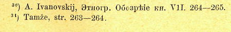 lidé pojídali nejdříve koně, a když aui těch nebylo, samy sebe. Zůstal na světě jen. ohromný velikán jednooký, ale i tomu došla potrava. Devět let proseděl bez jídla a zhubeněl jako tyčka. Potom odešel na místo, kde dříve lidé žili, a spatřil celý kraj posetý obilím a vedle jeden stan. Vešel do stanu a našel tam mladou dívku se psem. Vypravovala mu, že byla ještě malým děvčátkem, když lidé začali pojídati druh druha. Nepozorovaně utekla se psem do jeskyně v horách a živila se každý den zrnkem obilním, které jí nosil pes. Psu pak dával Bůh každý den po dvou zrnkách; jedno snědl sám, druhé dával dívce. Poznavši pak, že už není nikde člověka, vrátila se sem; pes nepřestával jí nositi zrnka. Ona v některé dni zrnka nejedla, nýbrž vsadila do země. Vyrostlo z nich obilí. Jednooký se s ní oženil, a tak se pokolení lidské opět rozmnožilo.3")
