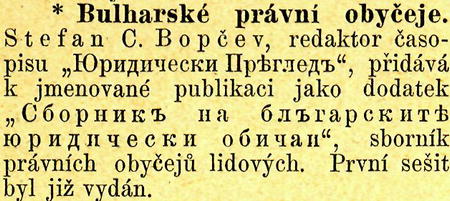 * Kovy německý časopis pro mythologické studium se zřetelem k lidovědě bude vydáván od příštího podzimu od T h.v A c h e 1 i s a. Podepsaný redaktor Českého Lidu byl vyzván, aby převzal stálý referát a pravidelné splupracovnictví. V době, kdy o českých věcech v oborech uvedených šíří se po nečeských časopisech nevždy správné a věcné mínění, bude mimo jiné povinností uváděti klidně, podle pravdy projevy druhu naznačeného čtenářstvu nečeskému na pravou míru, po případě (kde snad bude potřeba) vyvraceti jejich nedopatření. Podrobnou zprávu o novém sborníku pak podáme, jakmile vyjde.