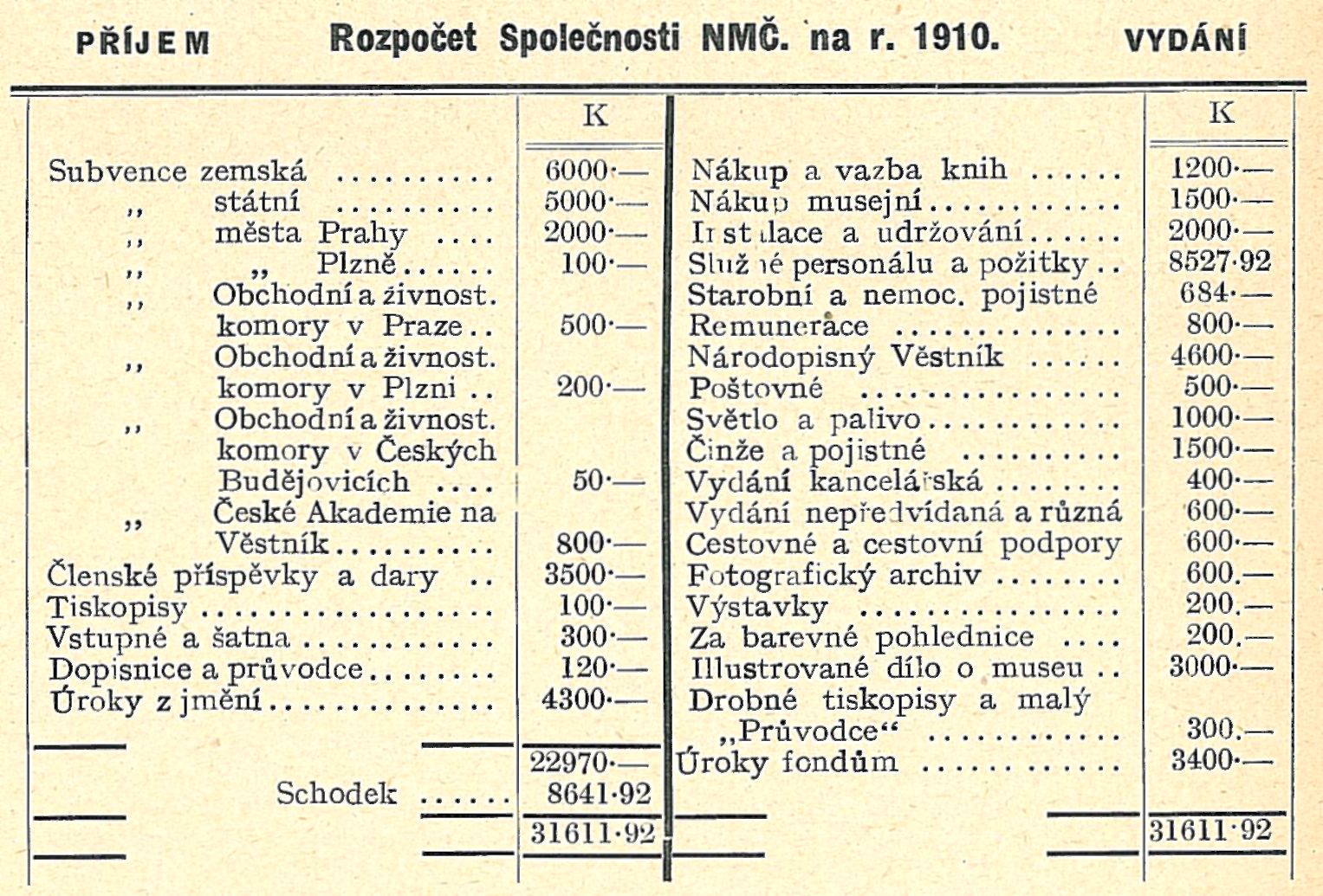 Rozpočet Společnosti NMČ. ha r. 1910.