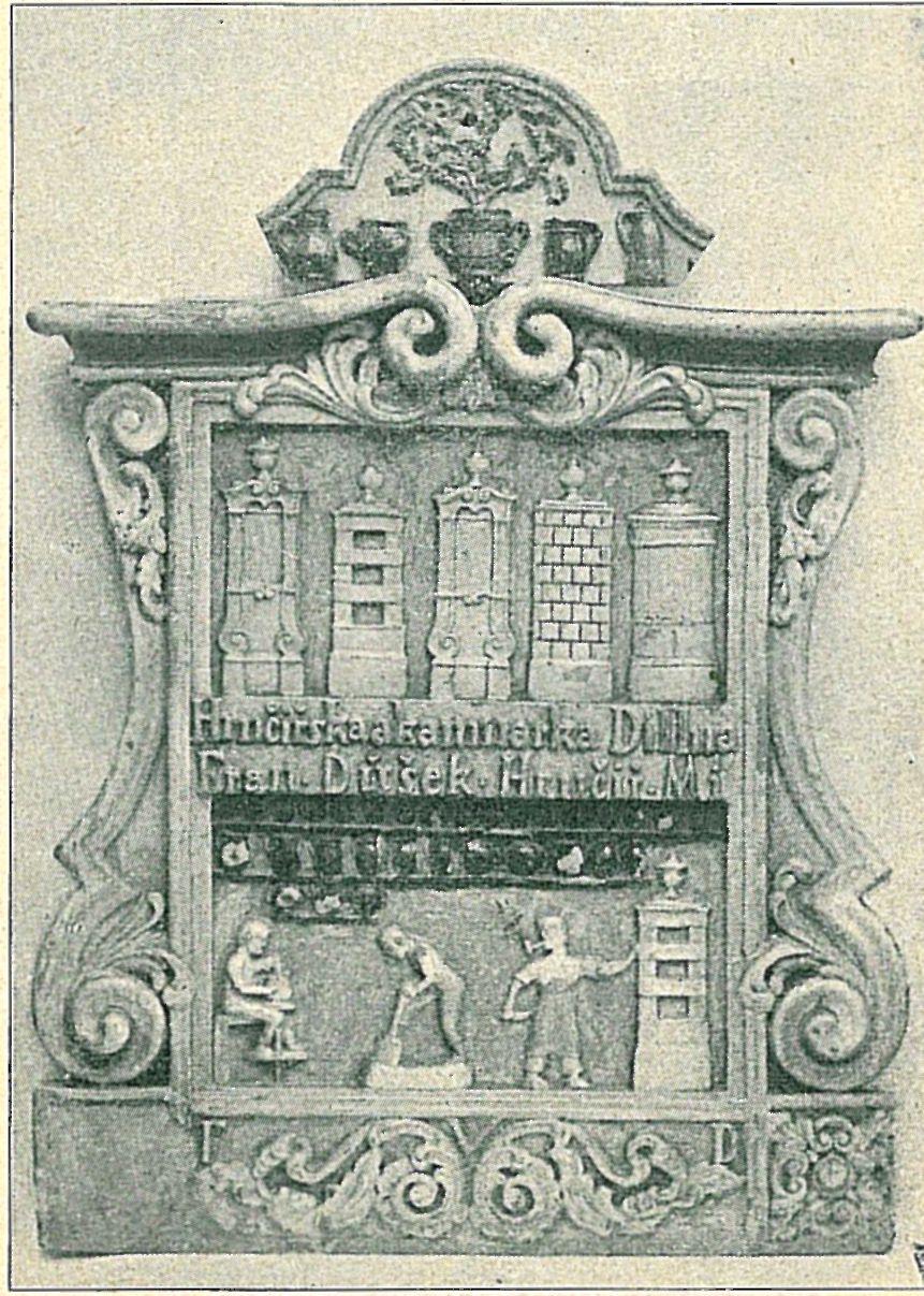 Štít kamnáře Frant. Duška na dům. Různě polévaný.