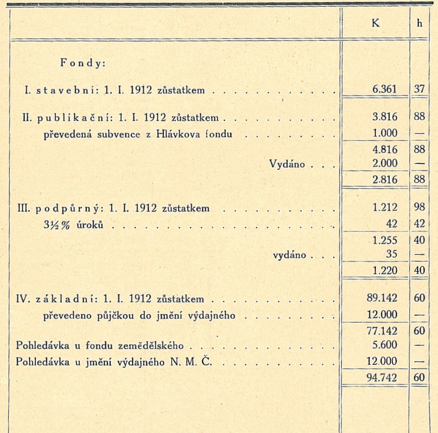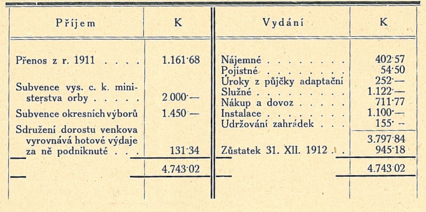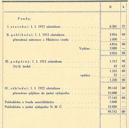 POKLADNÍ ZPRÁVA FONDU ZEMĚDĚLSKÉHO 1912.