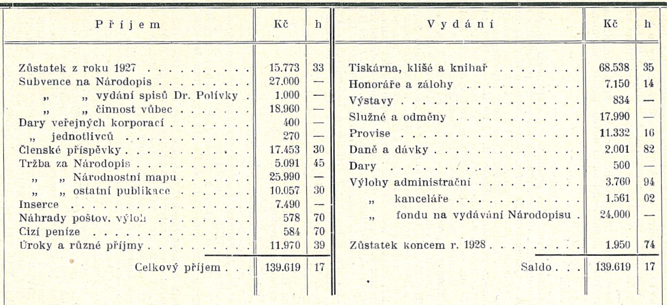 Pokladní zpráva za rok 1928.