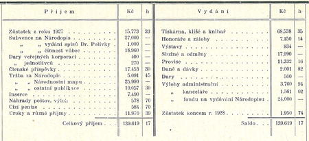 pokladní zpráva za rok 1928.